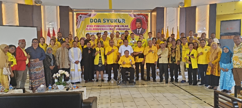 KUPANG, terasntt.co — Secara resmi Presiden RI Prabowo Subianto menganugerahkan Gelar Pahlawan Nasional kepada Jenderal Besar TNI H.M.Soeharto sebagai Presiden ke 2 di Jakarta bertepatan dengan hari Pahlawan 10 November 2025. Golkar NTT menandainya dengan doa syukur bersama di Kantor Golkar setempat, Rabu (12/11/2025).