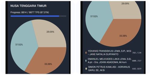 Quick count Charta Politika yang ditayangkan secara live di sejumlah televisi menempatkan paslon cagub cawagub NTT nomor 2 Melki-Johni sebagai pemenang Pilgub NTT.