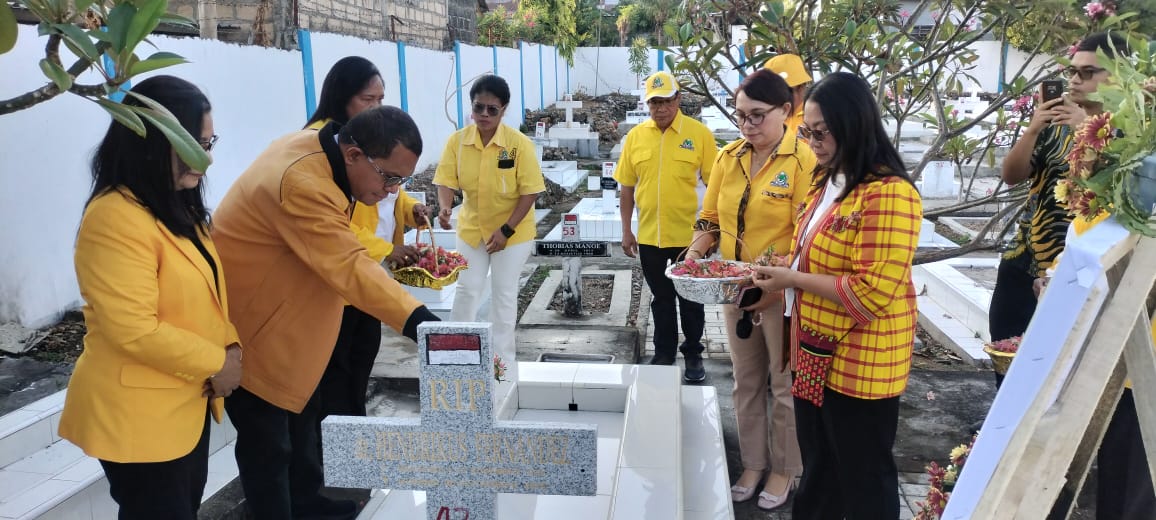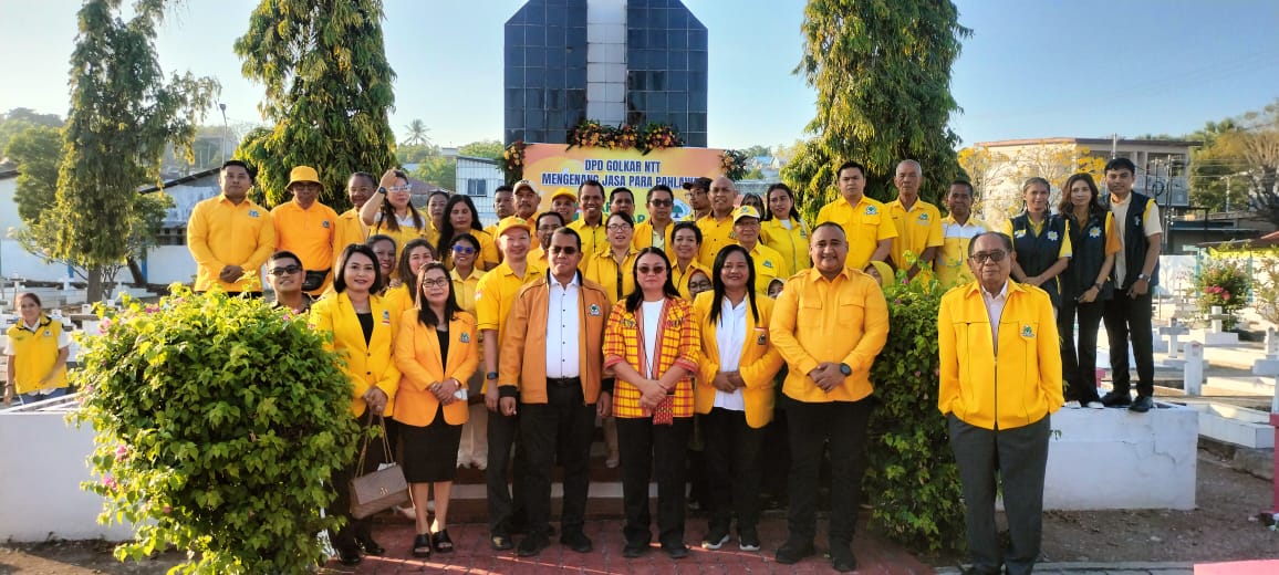 DPD 1 Golkar NTT, bersama pengurus DPD 2 Kabupaten dan Kota Kupang menutup rangkaian kegiatan HUT partai dengan berziarah ke Taman Makam Pahlawan (TMP) Dharmaloka Kupang, Senin (20/10/2025).
